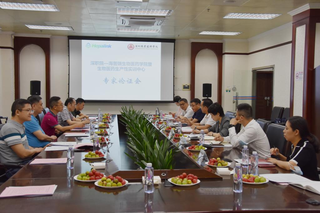 7月13日,买球官网买球官方网站在留仙洞校区明德楼101会议室,组织召开了深职院——海普瑞生物医药学院暨生物医药生产性实训中心专家论证会。会议邀请了深圳大学药学院院长吴海强教授、国药集团致君制药(深圳)有限公司原董事长邓宝军、深圳市生命科学与生物技术协会党委书记、会长袁庆、深圳药师协会秘书长陆喜宁、买球官网发展规划办公室主任王波、技术与职业教育研究所所长卿中全等专家把关。深圳市海普瑞药业集团股份有限公司副总裁张洁、运营工厂总经理严凤先、策划发展部总监杨骏,买球官方网站院长、书记刘冬,副院长李永红,药学、生物技术及应用方向专业教师参加会议。会议由李永红主持。