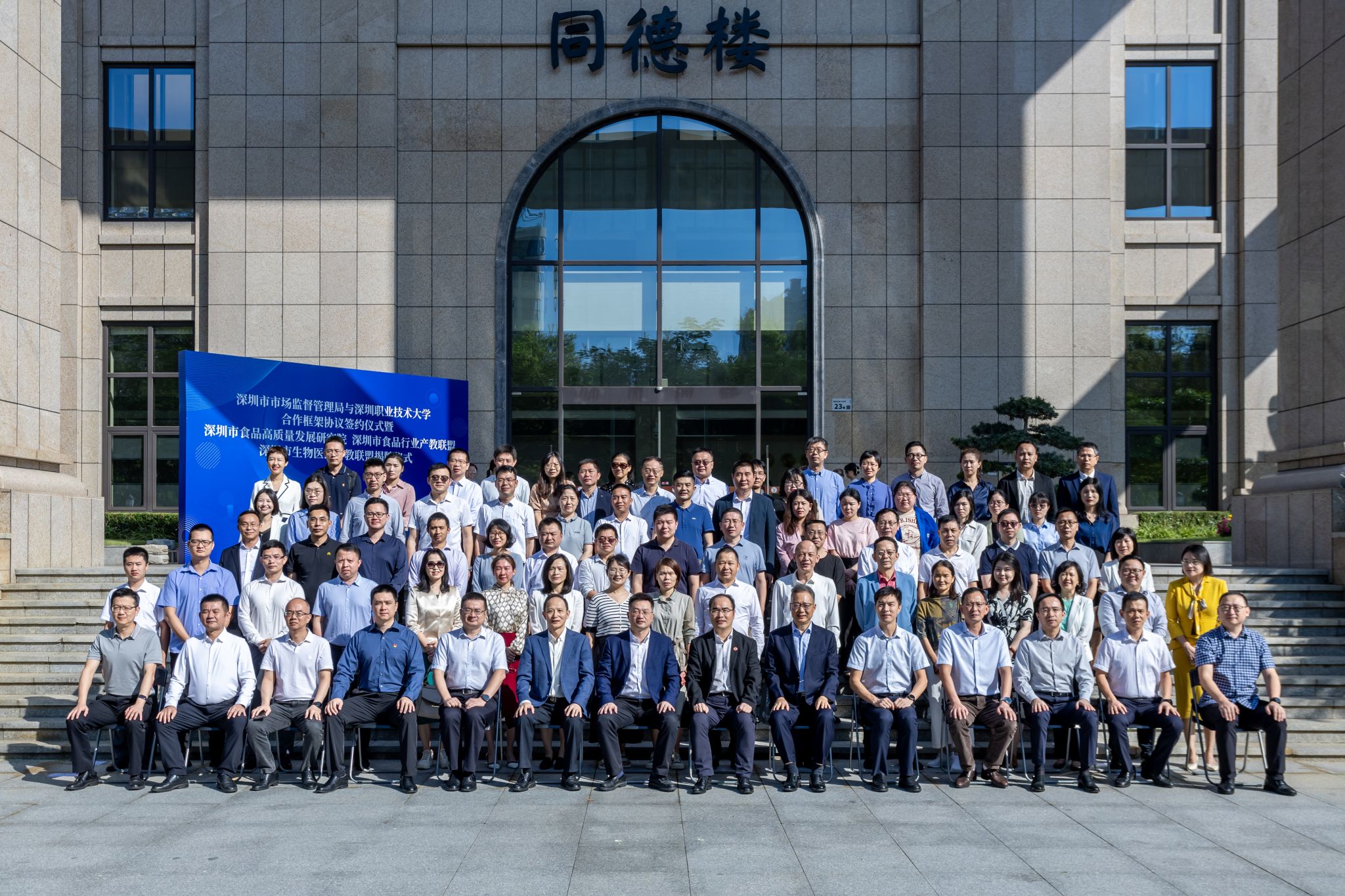 11月1日上午,深圳市市场监督管理局与买球官方网站合作框架签约仪式暨深圳市食品高质量发展研究院、深圳市食品行业产教联盟、深圳市生物医药产教联盟揭牌仪式在买球官方网站留仙洞校区同德楼1号会议室举行。深圳市市场监督管理局党组书记、局长蔡英权,深圳市市场监督管理局机关党委书记、二级巡视员陈建民,买球官方网站党委副书记、校长许建领,副校长董朝君等出席仪式,来自深圳市市场监督管理局食品、药品相关职能部门的主要负责人,深圳食品、生物医药行业协会(学会)领导以及深圳食品、生物医药领军企业、头部企业、专精特新企业等140余家联盟发起单位和买球官方网站买球官方网站师生参加活动。