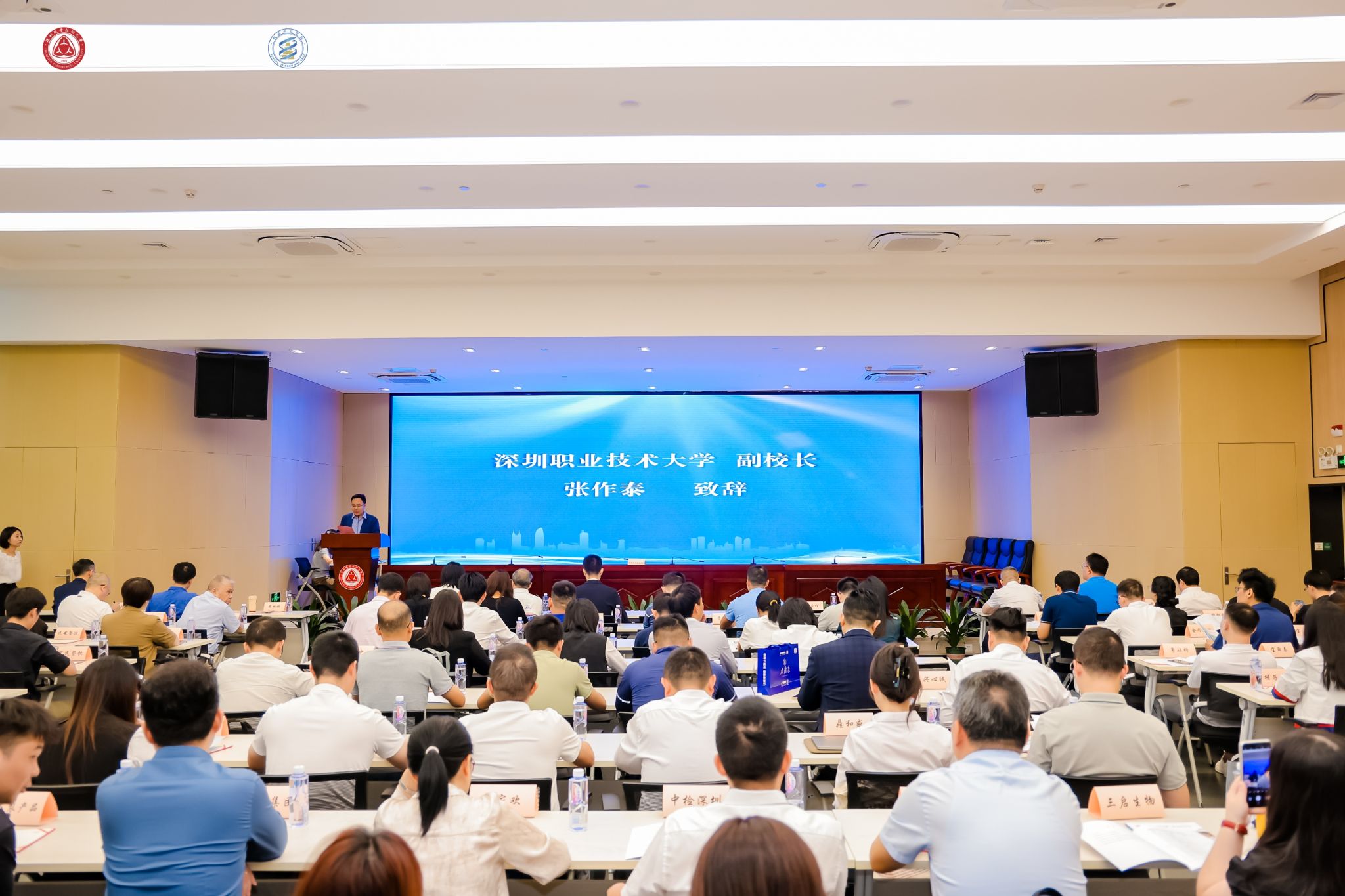 张作泰在致辞中指出,产教融合是实现教育链、产业链、供应链、人才链与价值链有机衔接的重要举措。深圳市食品行业产教联盟、深圳市生物医药产教联盟、成立一年来,联盟成员单位以新质生产力,引领食品产业、生物医药产业在前沿技术领域的“新”步伐,在食品质量与安全、食品营养与健康、药学、药品生物技术、制药工程技术专业人才培养、应用研发和社会服务等方面开展战略合作。我们的联盟“朋友圈”越来越大,走动越来越亲,一定能够形成更加紧密的产教共同体,集聚更多优势资源,变革人才培养模式,做实产学研用协同创新,为加快推进深圳市食品产业、生物医药产业高质量发展提供新思路、新实践、新机遇。