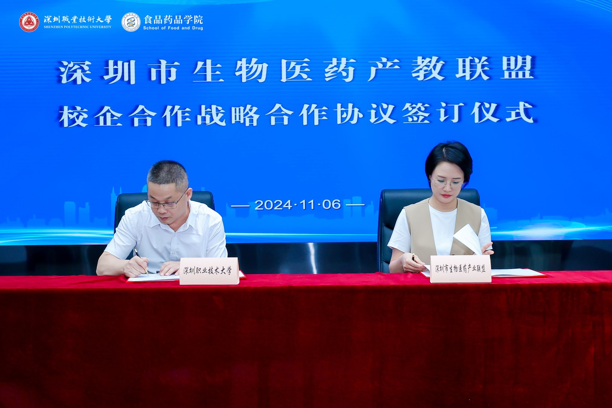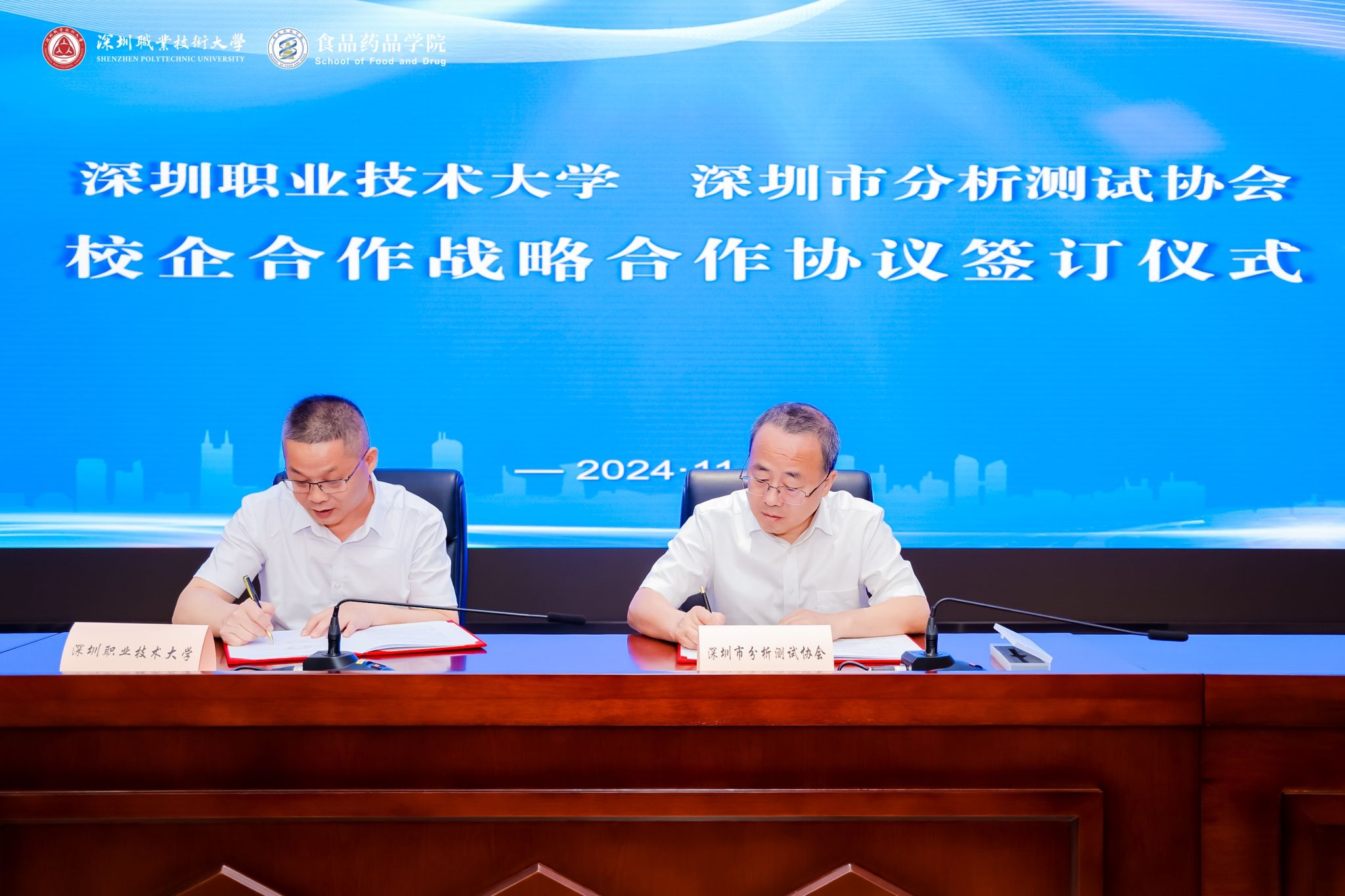 会上,买球官方网站副院长李永红代表学校分别与深圳市分析测试协会、深圳市生物医药产业联盟和深圳湾宝龙生物药创新发展先导区签署了战略合作协议。此举将促进共同培养适应行业需求的高素质技术技能人才,为食品、生物医药行业的发展提供坚实的人才支持。