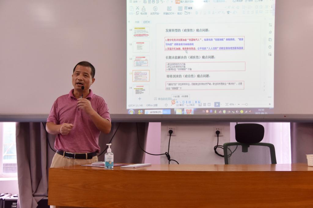 9月15日,买球官方网站在留仙洞校区知行园B座召开教学成果奖培育、凝练、申报专题会议,学院全体教师参加学习会。学校技术与职业教育研究所徐平利研究员应邀做主题报告。学院党总支书记、院长刘冬,副院长李永红、黄略略,党总支副书记段杰鑫出席会议。会议由李永红主持。