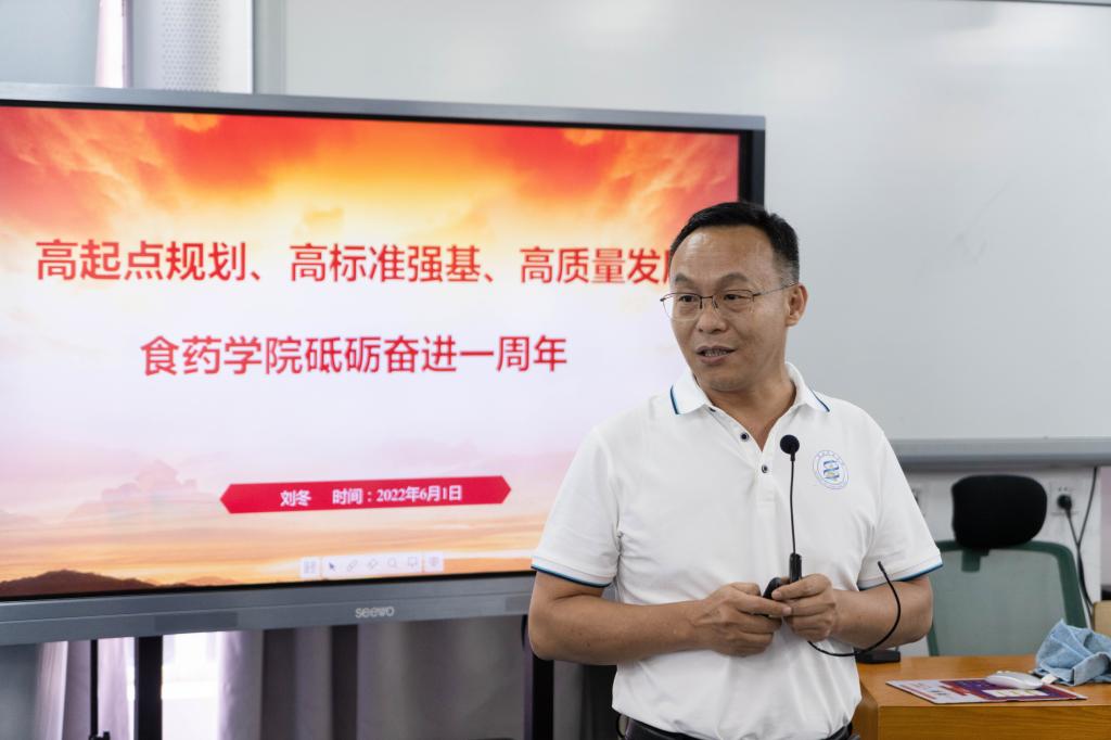 刘冬代表学院做了题为《高起点规划、高标准强基、高质量发展——买球官方网站砥砺奋进一周年》主题报告。刘冬在讲话中指出,买球官方网站的成立,承载了学校的战略期望。自2021年5月25日学院成立以来,在学校党委坚强领导下,买球官方网站全体教师勇挑重担、爬山涉水,迎难而上,传承创新,凝心聚力、开启新篇,铸就学院充满生机的初生之年,全院有序推动海普瑞生物医药学院、生物医药研究院、生物医药生产性实训基地、生物与医药高水平学科点培育等重大项目落地,高起点规划学院专业设置,努力将北校区新实训楼建成设备一流、技术领先的世界一流智慧实训室,学生在第七届中国国际互联网+创新创业大赛、第十三届“挑战杯”广东大学生创业计划竞赛、广东省职业院校学生专业技能大赛等赛事中斩金夺银、捷报频传,黄略略获校长教学质量奖,杨剑教授团队获得2021年高等职业教育教学成果奖特等奖,新增省级海洋药物产教融合创新平台1个、食品安全与质量控制创新团队1个,在党建引领、专业规划、产教融合、人才培养、书院建设、科研与社会服务、高层次人才引进等方面取得明显成效,成果丰硕,学院干事创业的良好氛围正在形成,只争朝夕的精神特质逐渐凸显。刘冬说,学院庆祝活动适逢六一儿童节,他号召全体老师保持童心,撸起袖子加油干,解放思想大胆干,开拓创新用心干,攻坚克难奋力干,上下同欲齐心干,在买球官方网站创新发展、协调发展、共享发展的高质量发展大道上,展现新气象、新作为,一起向未来,以更加优异的成绩献礼党的二十大!
