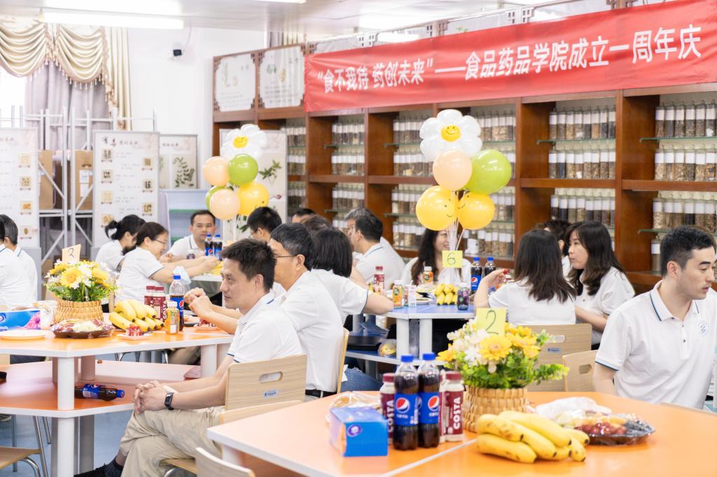 庆祝活动环节,院领导、学院各部门负责人和全体老师共同分享了蛋糕,共同寄语学院“未来可期、世界一流”。新入职教师王俊分享了自己在原单位深圳市慢性病防治院的工作业绩和研究方向,表示将努力为学院新设专业食品营养与健康专业贡献全部力量。自学院成立以来报到的8位“食药宝宝”现场进行了热烈欢快的才艺表演。活动现场,还通过学院发展大事记有奖抢答、周年庆最佳祝福语评选等活动,全院老师一起回望拼搏奋斗的足迹,回味360多个日日夜夜的奋斗与艰辛、勤劳与汗水。