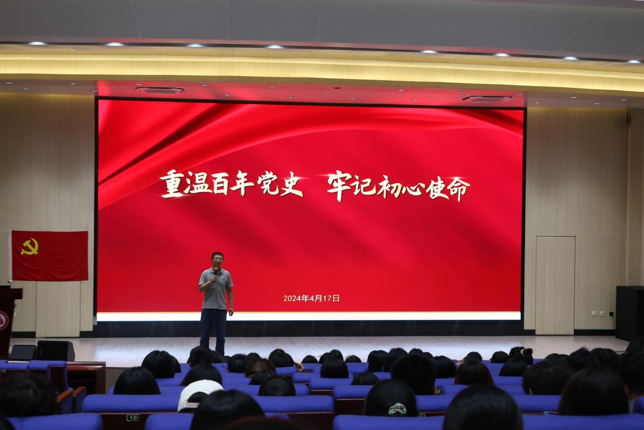 4月17日下午,买球官方网站博达书院学生党支部在官龙山校区报告厅举办第六期入党积极分子培训班开班第一课,买球官方网站副书记段杰鑫以“重温百年党史,牢记初心使命”为主题进行授课。