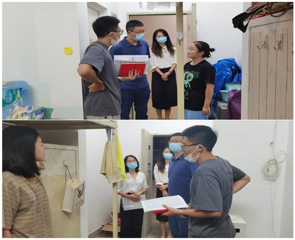 9月2日,为了解学生返校情况及思想动态,落实疫情防控工作,买球官方网站党总支副书记段杰鑫带领全体学工办辅导员走访学院全体学生宿舍。