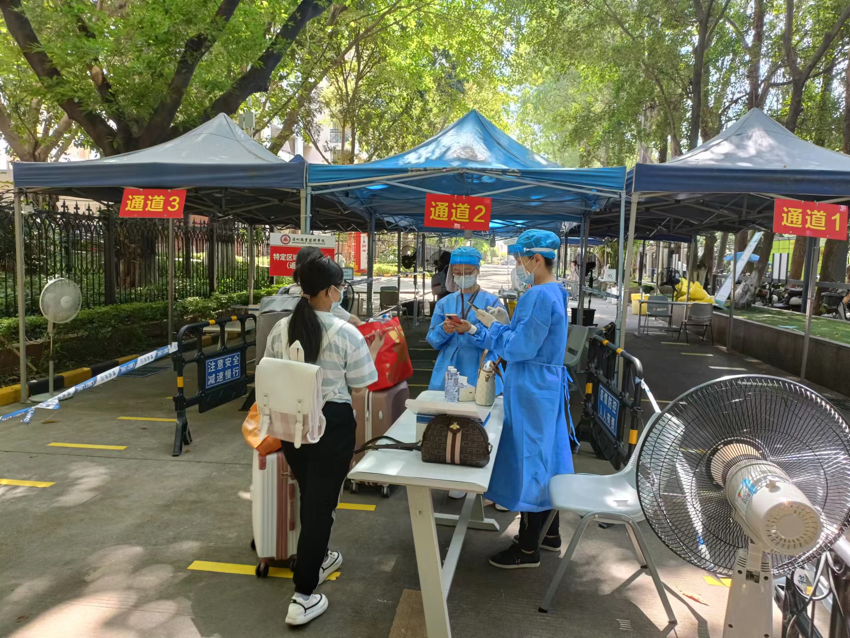 “久违的校园!我给室友们准备了家乡特产,想早点跟她们一起分享。”20药学3班的梁美婷告诉老师。“返深路上特别激动,攒了一个春天的想念,终于可以相拥五月。”20药学1班陈翠梅激动地分享。