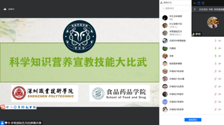 3月23日,为充分发挥学院专业特色,买球官方网站(博达书院)利用腾讯会议线上举行第一届“能工巧匠”营养宣教技能大比武。本次比赛邀请到学院代建国、李彬、任莉莉老师担任活动评委。根据比赛规则,需以个人或组合团队进行报名参赛,要求每组选手在5分钟内向观众展示健康养生营养方面的见解,一共有10组选手进入最后决赛。选手们经过比赛前的精心准备,将健康养生领域的独到见解通过精美的PPT及有趣的演讲形式传递给观众,使线上观众了解了很多平时没有关注到健康养生的保健知识。最后,比赛评委们除对选手的表现做精彩点评外,还就健康保健养生领域的最新研究前沿跟选手及观众进行了分享,让本次比赛的意义得到了进一步升华,使买球官方网站学生对食品营养、健康保健等领域产生了更加浓厚的兴趣。(买球官方网站 刘根柱)