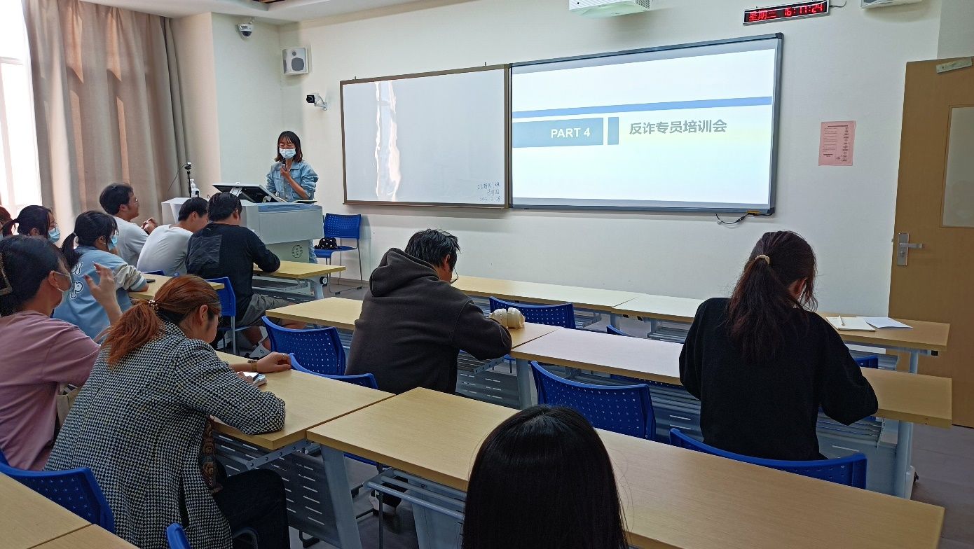3月2日,为进一步推进新学期校园防范电信网络诈骗宣传工作,增强学生反诈意识,买球官方网站在德业楼举办新学期反诈专员培训会。各班级反诈专员经过自主报名、安全知识测试、个人能力考核选拔出来。辅导员吴叶琴列举了学校开学以来发生的电信诈骗案件及涉案金额,用实际案例警示学生,分享防诈反诈的技巧与方法,并明确了班级反诈专员的工作职责以及制定新学期的工作目标。本次反诈专员培训会,是学院贯彻落实学校要求,切实将防诈反诈理念深入人心的重大举措。(买球官方网站 刘根柱)
