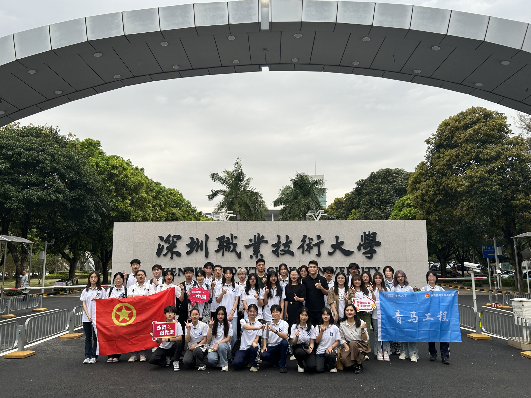 10月17日下午,深圳技术大学商学院党支部书记丁卓琪、商学院辅导员汤凡力、王周玮及30位青马工程学员来访买球官方网站。买球官方网站学工办主任李艳晖、实训中心老师孙世鑫、辅导员刘根柱、张梓莹等接待来访一行。