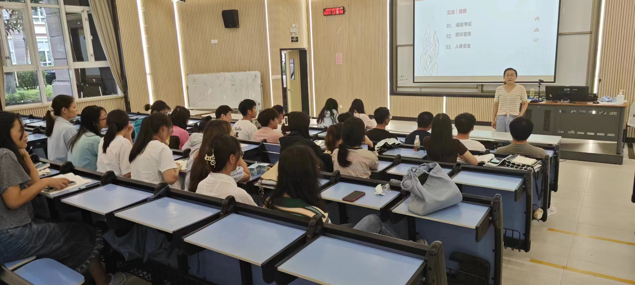 在班会期间还强调了防诈宣传和健康安全。通过告知学生近期发生的诈骗案例,帮助学生了解诈骗套路,掌握反诈常识,提升自我防范意识,最大限度避免财产损失,切实维护财产安全。