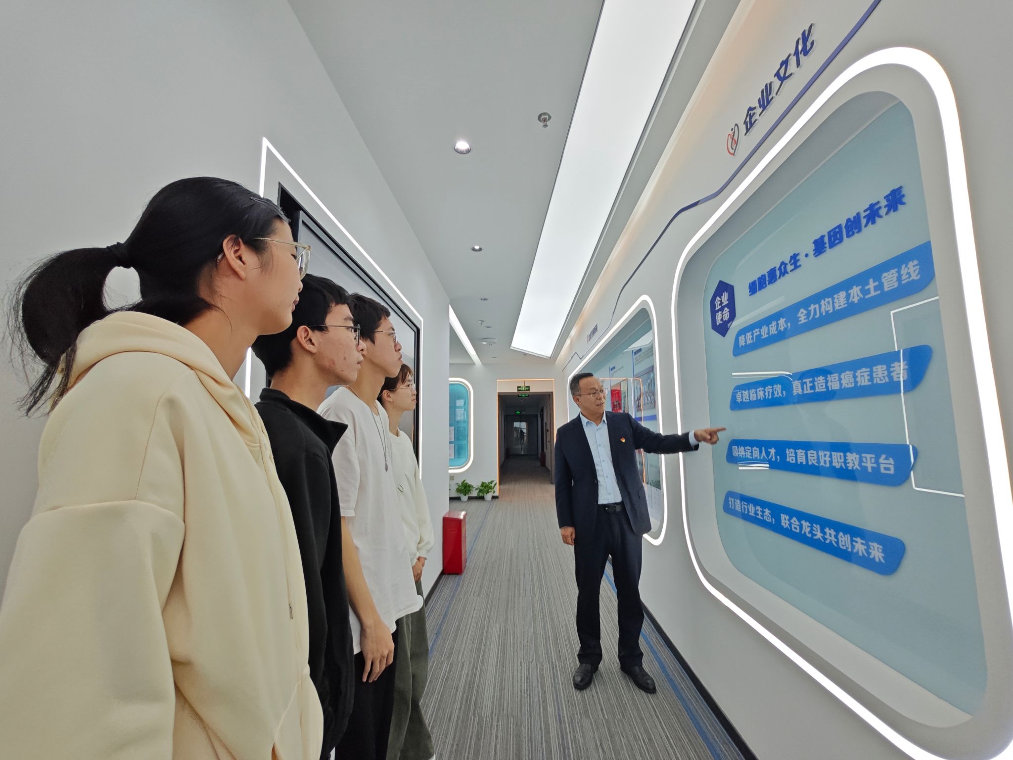 本本次思政课程的一大亮点是创新授课模式,联动企业力量,将传统的课堂讲授与企业参观实践相结合,将课堂置于企业中去,拓展教学的边界。刘冬带领同学们走进深圳细胞谷生物医药有限公司参观实践,认知了医药行业“治病救人”的职业道德和社会责任。同学们走出校园,踏入行业前沿阵地,在观察、感受、思考和实践的过程中,见识了生物医药行业的前沿动态和发展潜力,直观了解了生物医药产业的创新力量和氛围,感知到了行业的温度和时代的气息。