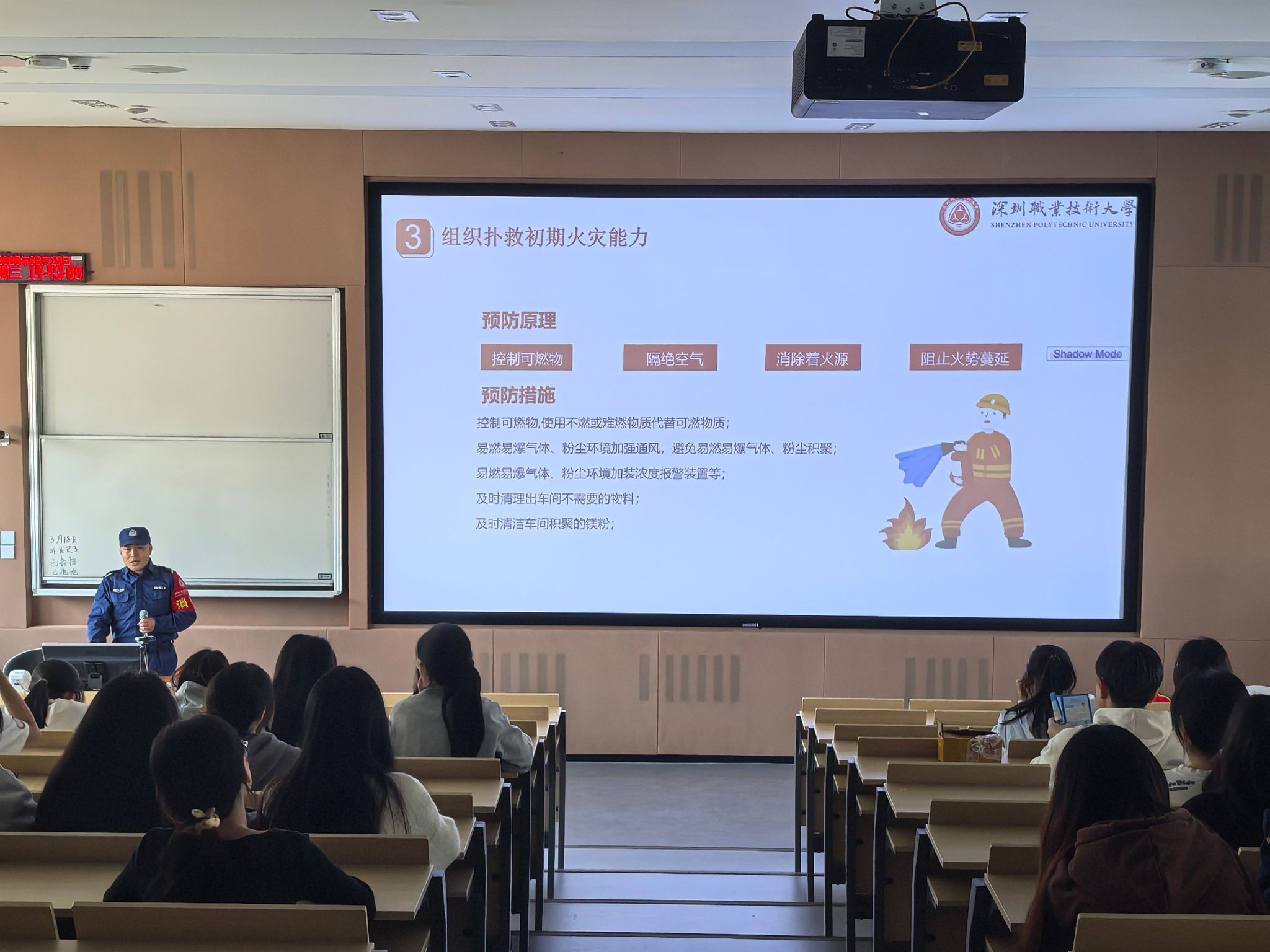 3月19日下午,买球官方网站在官龙山校区崇德楼开展了青马工程、飞翔计划第九课。此次讲座由保卫处谢作亮老师主讲《消防安全及逃生技术》,旨在强化学生消防安全意识,提升相关技能。