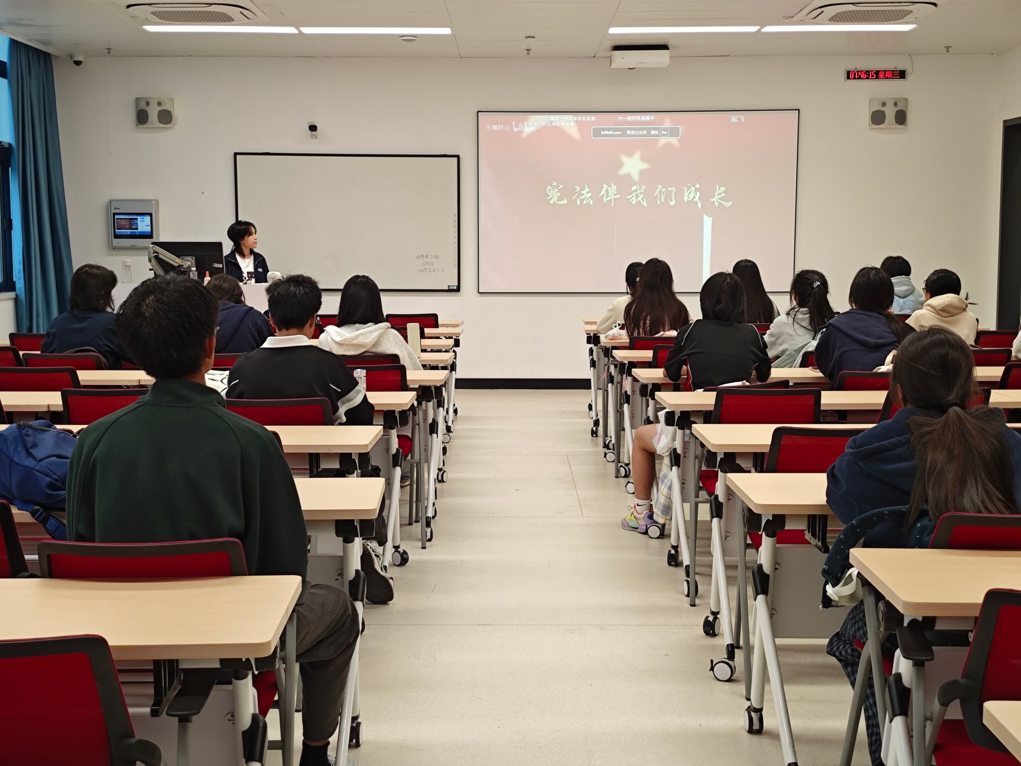 同学们跟读宪法部分条款,重点学习公民基本权利义务内容,并聆听《宪法伴我们成长》主题歌曲。学院将此次宪法晨读活动作为“宪法宣传周”核心环节,精心组织集中收看,促进广大学生进一步认识到宪法与日常学习、行业规范的紧密联系,自觉以宪法为行为准则,恪守学术诚信与职业操守。