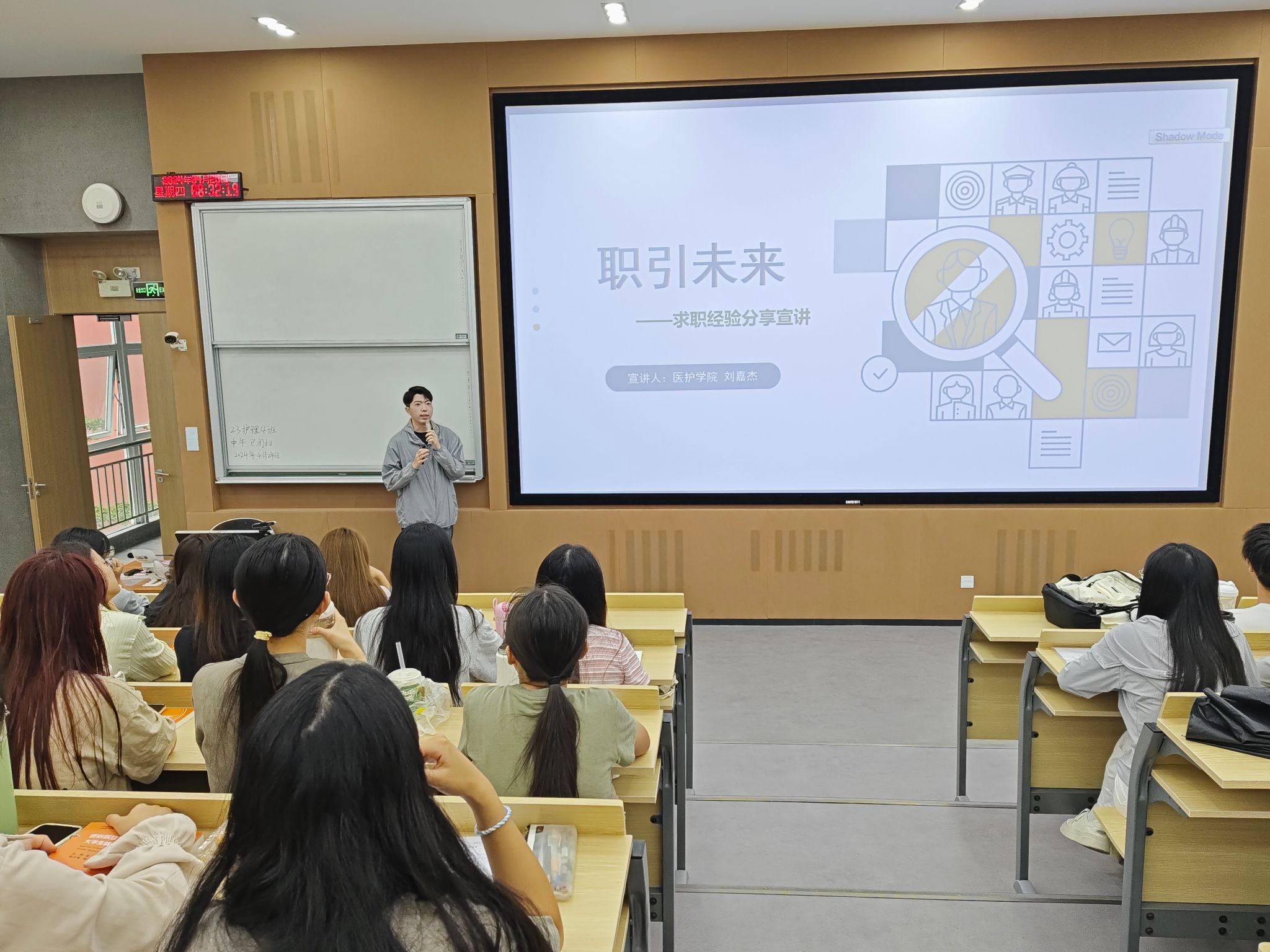 4月25日,买球官方网站在官龙山园区开展优秀朋辈职业规划交流会,22级药生、食安专业共计120余位同学参与此次交流会。本次邀请分享的朋辈是在今年首届全国大学生职业规划大赛广东省赛区比赛中荣获金奖的医护学院21护理2刘嘉杰同学。在交流会上,刘同学分享了自己的职业规划历程,包括如何确定职业目标,自身学习经历、参加全国职规赛备赛心得体会、求职简历制作、如何有效获得招聘信息及面试技巧等方面的经验。通过此次交流会,同学们更加明确了自己的职业方向,也收获了宝贵的职业规划经验和建议。同时,交流会也为大家提供了一个互相学习、互相启发的平台,让同学们在职业规划的道路上不再孤单。(买球官方网站 刘根柱)