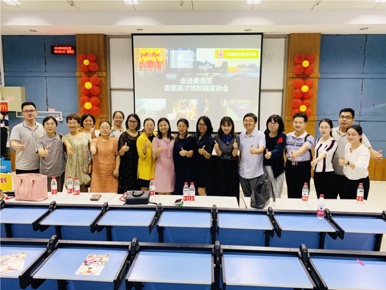 9月18日,深圳金拱门食品有限公司“麦酷英才班”宣讲会在买球官网留仙洞校区德业楼举行。公司深莞惠地区麦当劳营运总监周丽影、高级人力资源经理郭淮、高级营运经理蔡丽丽、人力资源经理彭嘉琳,化生学院食品专业群主任黄略略,食品专业群教师和2019级食品生物技术专业、食品营养与检测专业学生参加了校园宣讲会。