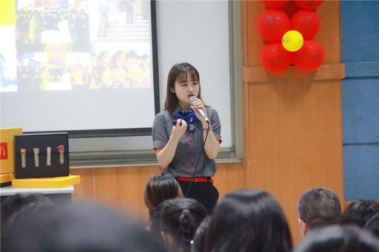 宣讲会上,彭嘉琳详细介绍了麦当劳的发展和荣誉历程。